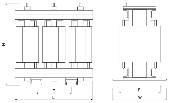 ■ 电抗器外形尺寸参考标准柜体尺寸设计,体积小,接线方便,大大节约用户柜体成本投资。